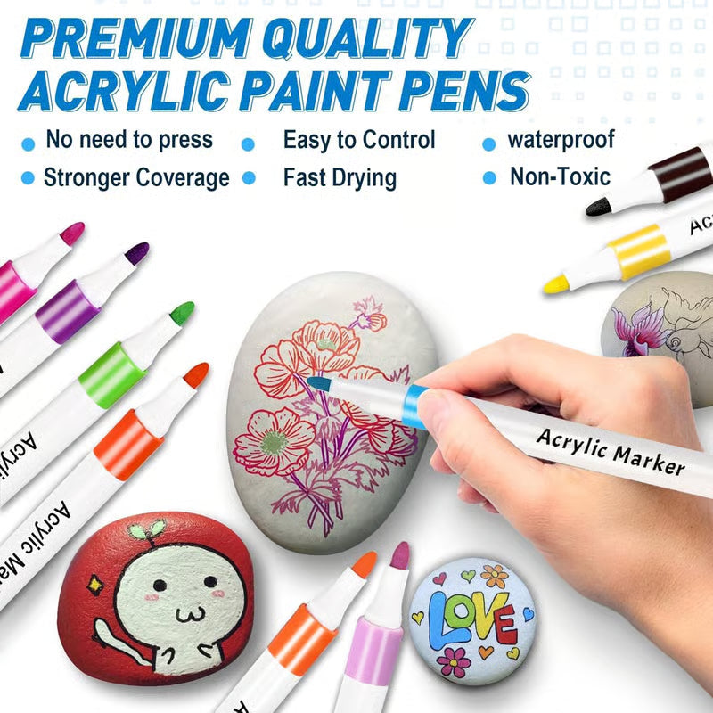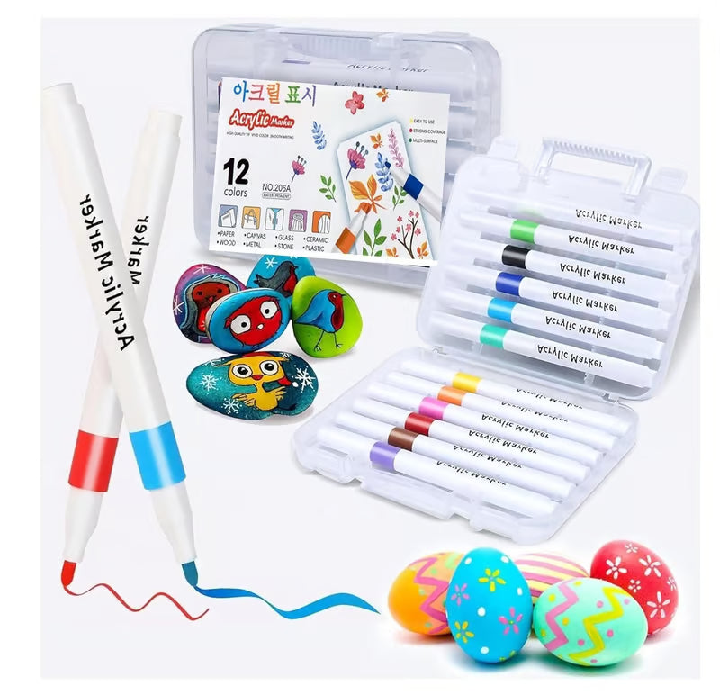Unleash your creativity with this versatile 12-color acrylic marker set. Perfect for decorating rocks, eggs, wood, glass, and more, these markers offer vibrant, long-lasting color with strong coverage and smooth application. The convenient storage case keeps your markers organized and ready for your next artistic project. Ideal for artists of all ages and skill levels.