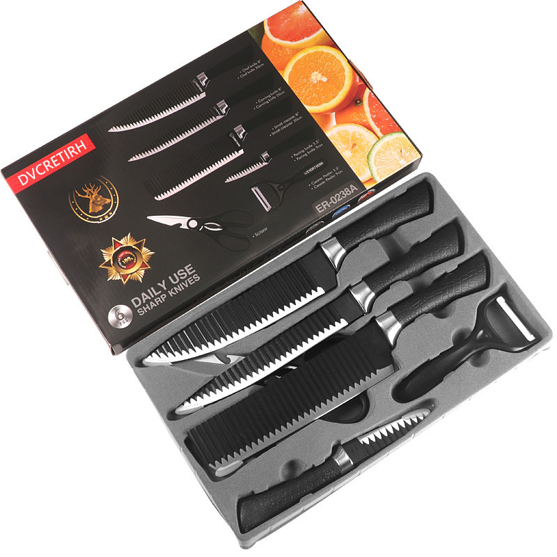 6-częściowy Zestaw Noży Kuchennych ze Stali Nierdzewnej z Falistym Wzorem