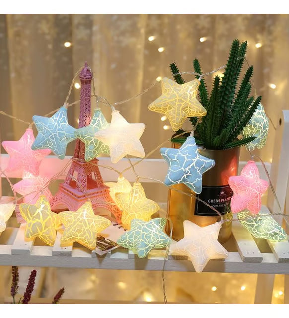 Colorful Star LED String Lights - Decorative Crackle Effect