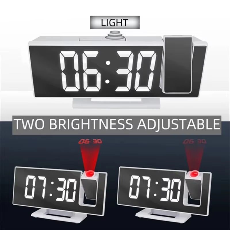 Wake up in style with our sleek Digital LED Projection Alarm Clock. Featuring a large, clear mirror display that doubles as a functional mirror, this clock projects the time onto your wall or ceiling for easy viewing day or night. Its modern design and adjustable brightness make it a perfect addition to any bedroom or office, ensuring you're always on schedule with a touch of contemporary elegance.