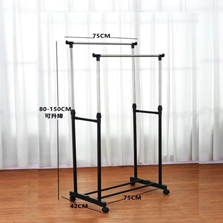 Double Rail Adjustable Clothes Rack with Wheels