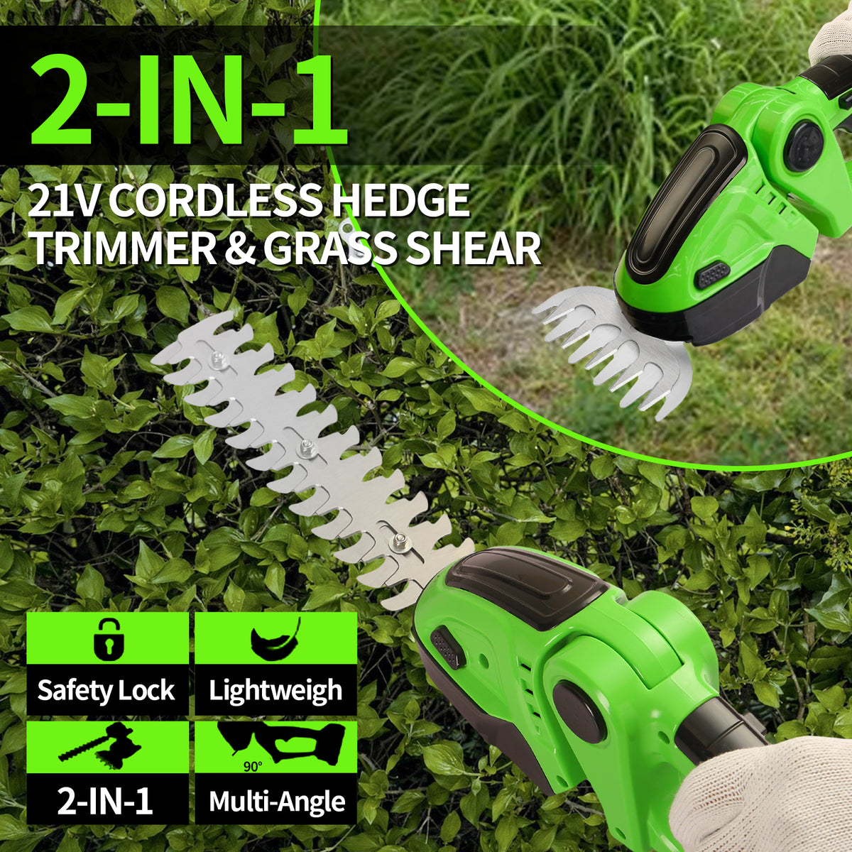 - Wszechstronna funkcjonalność 2w1 z wymiennymi ostrzami do trawy i żywopłotu • Versatile 2-in-1 functionality with interchangeable blades for grass and hedges
