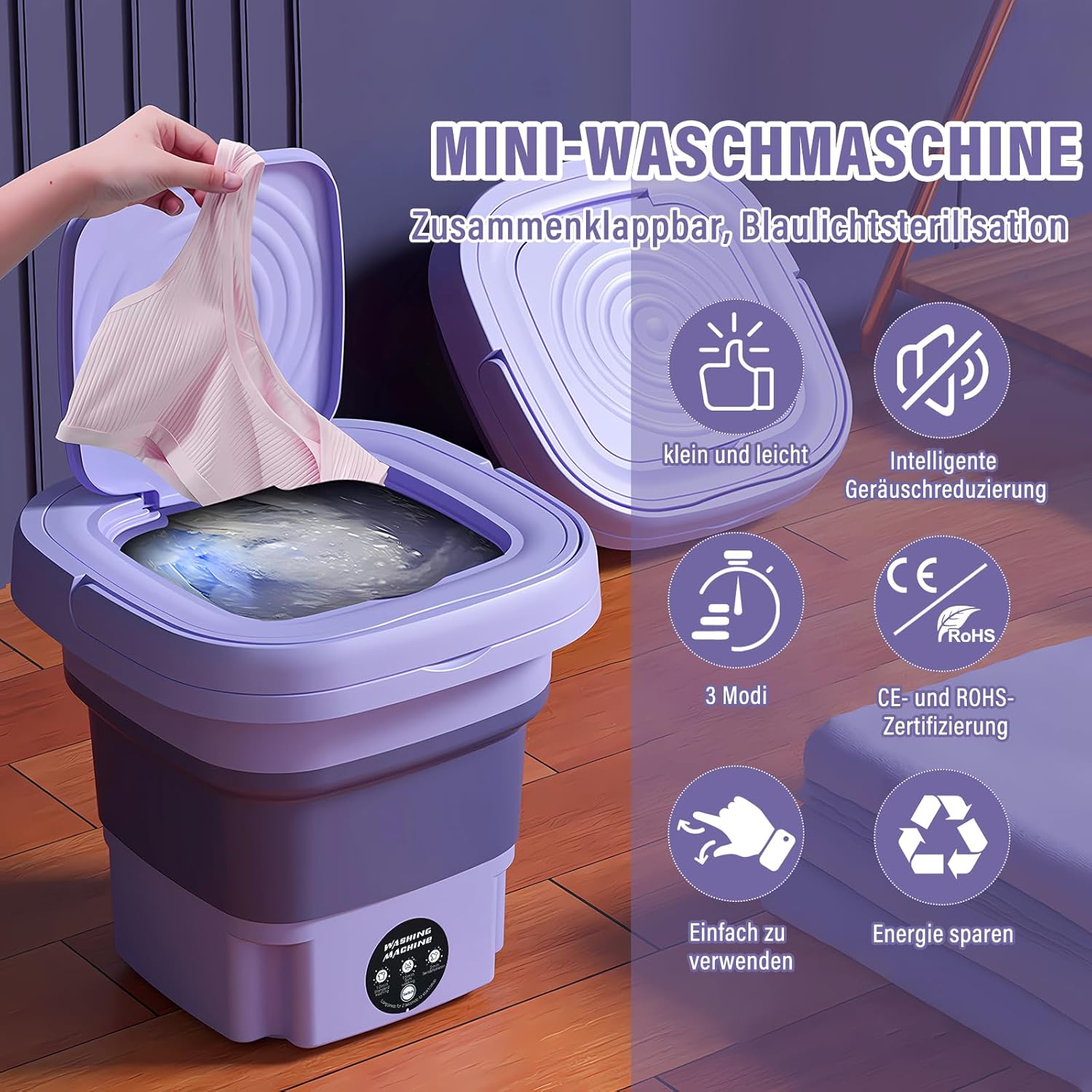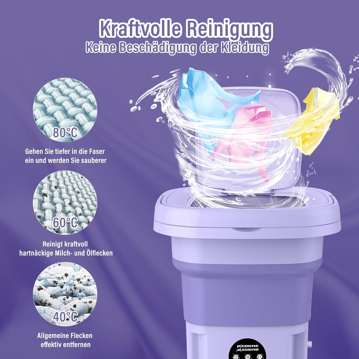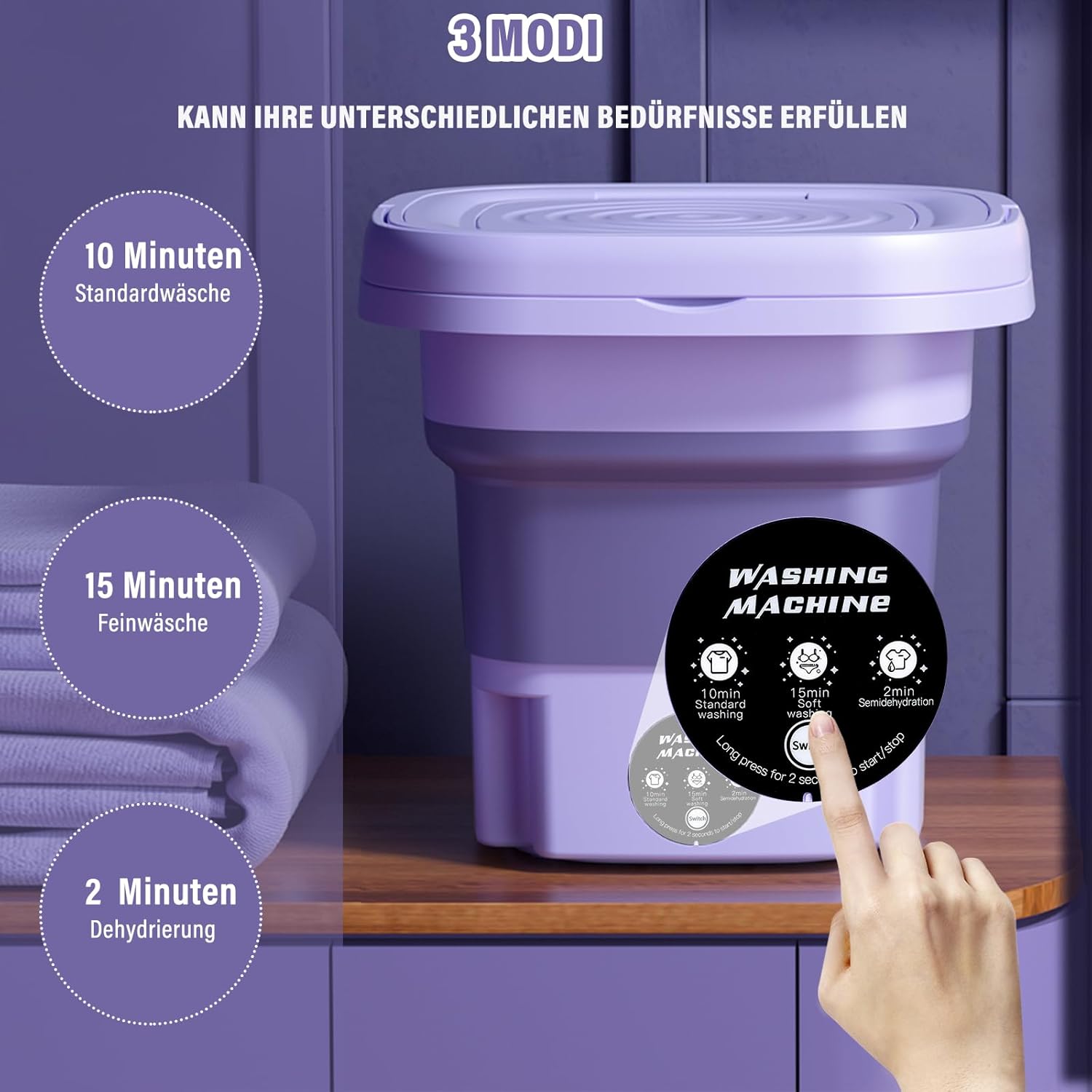 Discover the convenience of laundry on the go or in small spaces with our foldable mini washing machine. Perfect for delicate clothes, underwear, socks, or baby garments. Its compact design allows for easy storage and transport, while the spin function ensures quick drying. Enjoy freshness and cleanliness wherever you are, effortlessly.