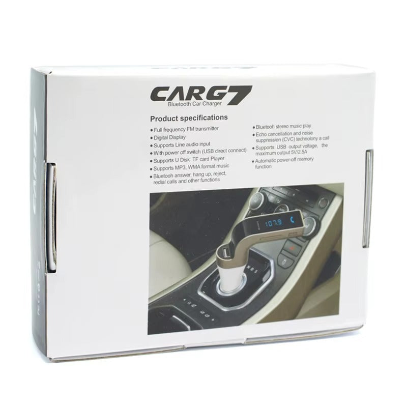 Upgrade your car's audio system and charging capabilities with the G7 Bluetooth Car Charger. This versatile device combines a powerful USB car charger, an FM transmitter for streaming music, and a hands-free kit for safe calls on the go. Enjoy crystal-clear audio from your phone via Bluetooth or play MP3s from a TF card or USB drive. Its intuitive design ensures easy operation, making every journey more enjoyable and connected.