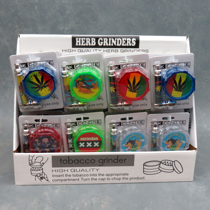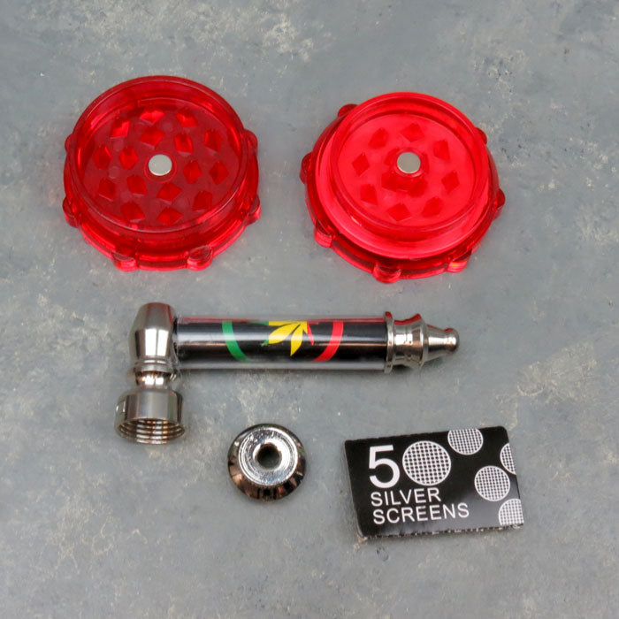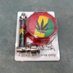 Discover our versatile Herb Grinder & Pipe Set, perfect for enthusiasts on the go. Each compact package includes a high-quality herb grinder and a convenient small pipe, featuring a variety of eye-catching designs from classic cannabis leaves to vibrant 'Amsterdam XXX' motifs. Designed for portability and ease of use, this set ensures you're always prepared. Its durable construction guarantees a long-lasting accessory for your herbs or tobacco.