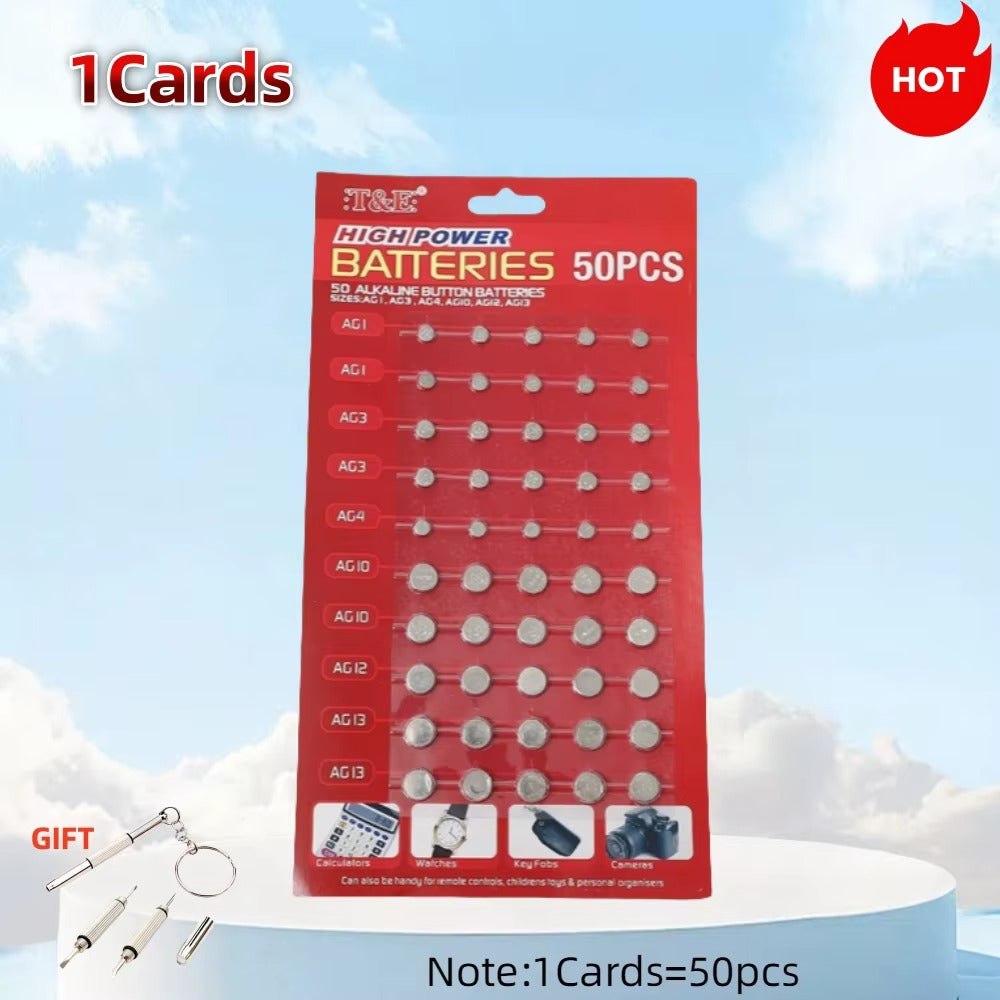 High Power Alkaline Button Batteries 50pcs - Assorted Sizes