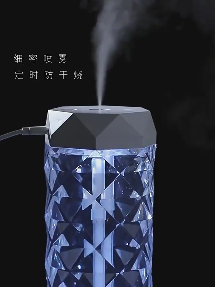 Elegancki kryształowy nawilżacz powietrza LED z efektem świetlnym 7 kolorów. Zapewnia delikatną mgiełkę nawilżającą, poprawiającą jakość powietrza w domu, biurze lub sypialni. Nowoczesna konstrukcja z diamentową fakturą tworzy wyjątkowe efekty świetlne. Idealny do aromaterapii, relaksu oraz dekoracji wnętrz.