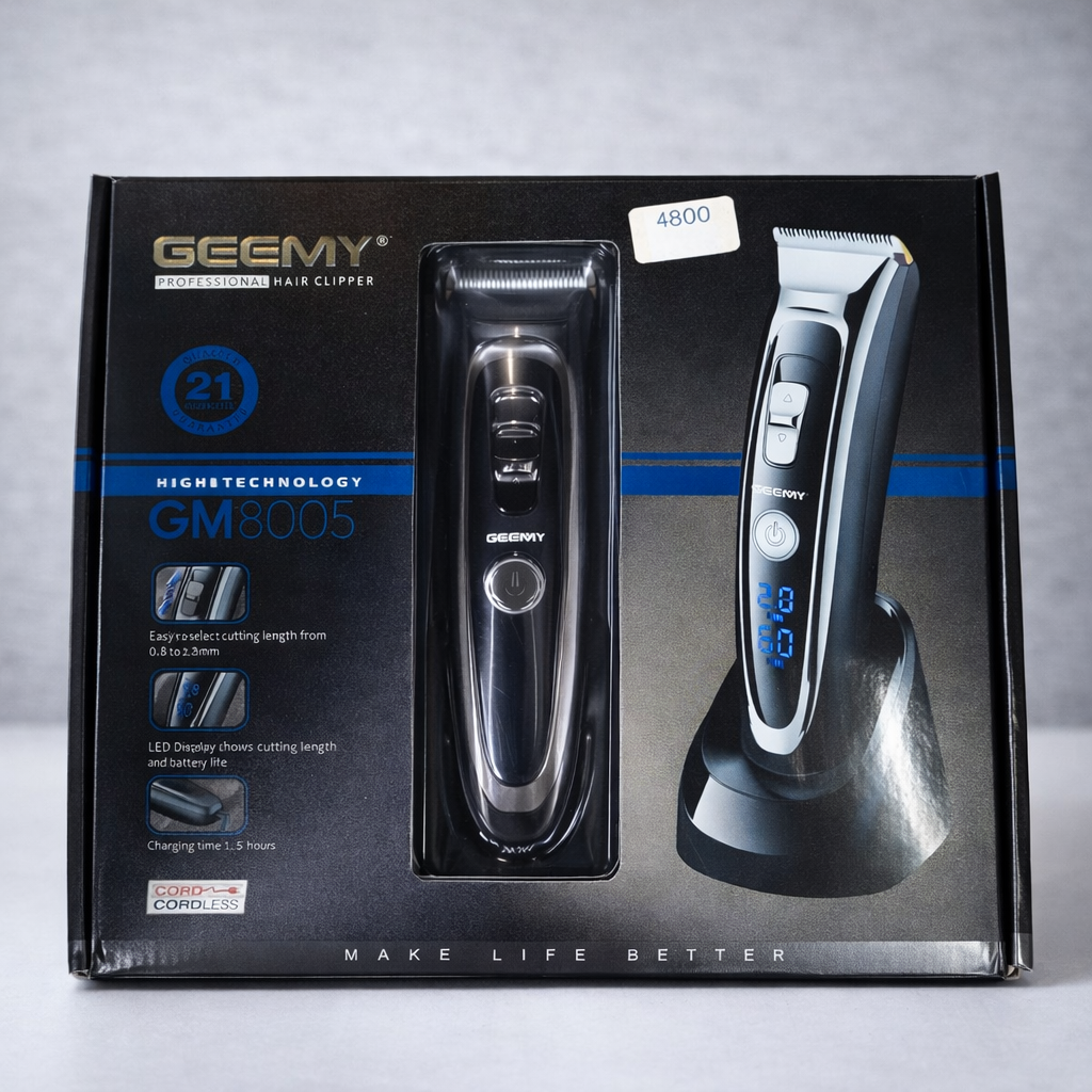 Achieve salon-quality haircuts at home with the GEEMY GM800 Professional Cordless Hair Clipper. Designed for precision and ease of use, this high-tech clipper features an intuitive LED display showing cutting length and battery life. With adjustable cutting lengths from 0.8mm to 2.8mm and a rapid 1.5-hour charging time, it offers unparalleled flexibility and performance for both corded and cordless operation. Its ergonomic design ensures comfortable handling for a perfect trim every time.