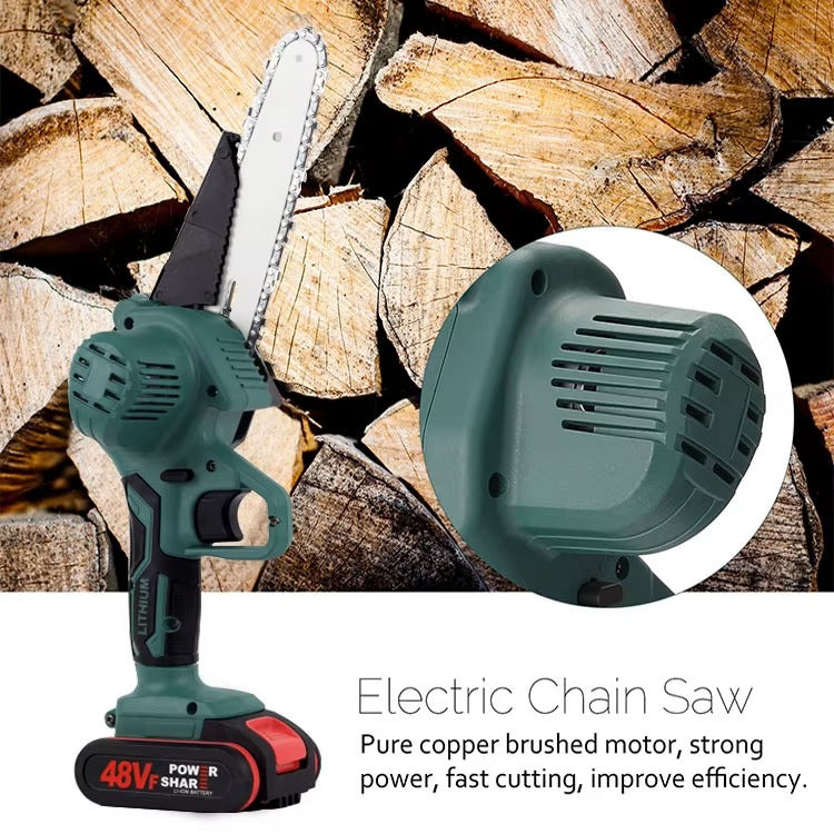 Tackle your pruning and light logging tasks with ease using this powerful and portable 6-inch cordless electric chainsaw. Designed for household use and outdoor projects, it offers exceptional maneuverability and convenience. With two included lithium batteries, you're always ready for extended work sessions without interruption. Its lightweight design and ergonomic handle ensure comfortable operation, making it an essential tool for any home gardener or DIY enthusiast.