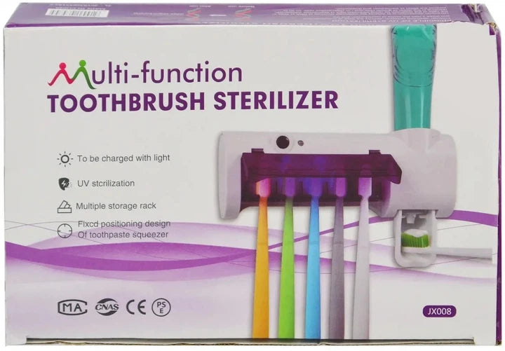 Ensure ultimate oral hygiene with our Multi-function UV Toothbrush Sterilizer and Dispenser. This innovative device uses powerful UV light to eliminate up to 99.9% of germs and bacteria from your toothbrushes, keeping them clean and safe for daily use. It features a convenient multiple storage rack for several brushes and an automatic toothpaste squeezer for mess-free dispensing. Designed for modern bathrooms, it's charged by light, offering an eco-friendly and hassle-free solution to your dental care routine.