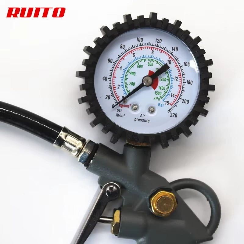 Ensure optimal tire pressure for safety and performance with this professional tire inflator. Featuring a clear, accurate pressure gauge and a robust, ergonomic design, this tool makes inflating tires quick and effortless. Its durable construction is built to withstand demanding workshop environments, while the flexible hose and easy-to-use trigger provide precise control for various vehicle types, from cars to trucks and bikes. A must-have for any garage or professional workshop.