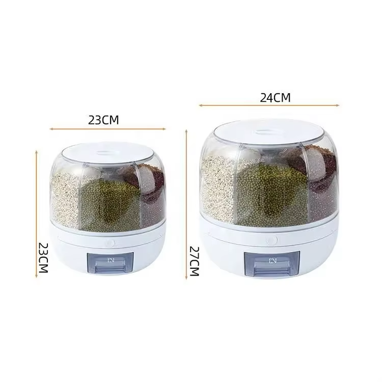 Zrewolucjonizuj organizację swojej kuchni dzięki naszemu innowacyjnemu obrotowemu dozownikowi na suchą żywność. Zaprojektowany z myślą o wygodzie i świeżości, ten dozownik posiada sześć oddzielnych komór do przechowywania różnych ziaren, ryżu, fasoli, płatków śniadaniowych lub karmy dla zwierząt. Obrotowa podstawa 360 stopni umożliwia łatwy dostęp do wybranego składnika, a mechanizm dozowania jednym dotknięciem zapewnia precyzyjną kontrolę porcji bezpośrednio do zintegrowanej miarki. Przezroczysta konstrukcja pozwala na bieżąco monitorować poziom zapasów, utrzymując porządek w spiżarni i świeżość składników.