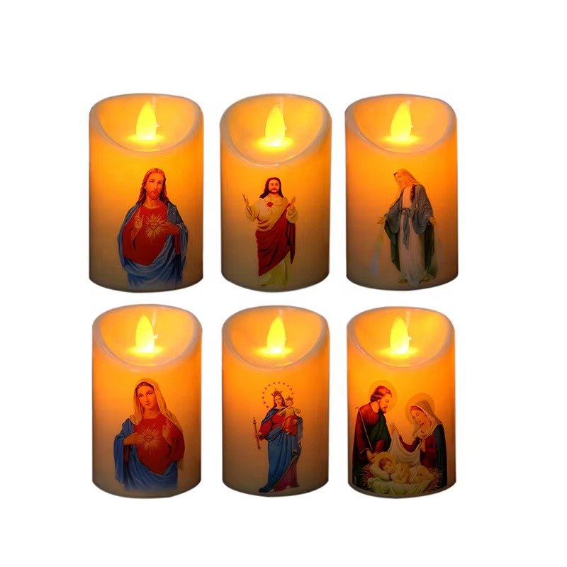 Elegancka i bezpieczna świeca LED z motywem religijnym