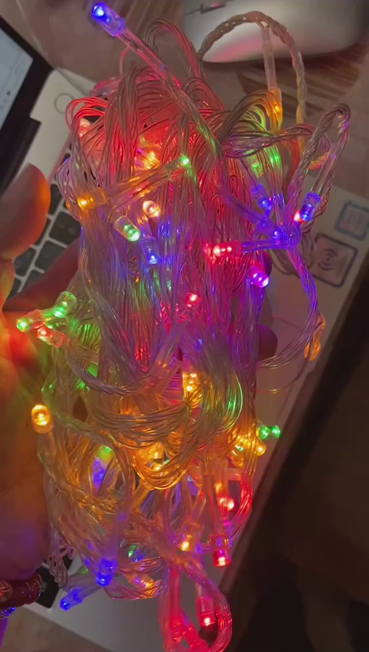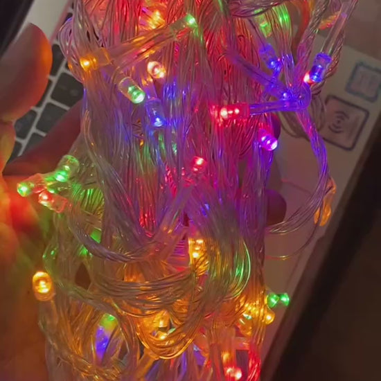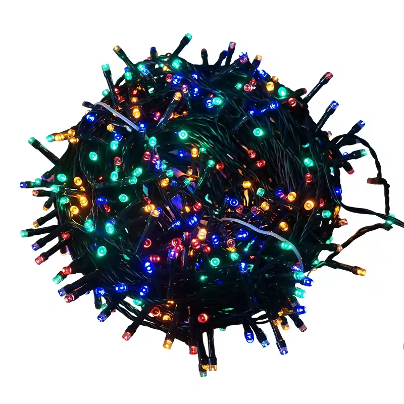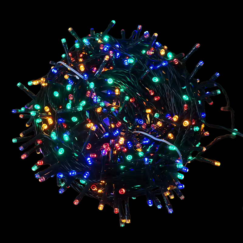A professional 100-meter multicolor LED string light designed for decorating homes, gardens, terraces, and events. It provides bright, even illumination with a flexible cable that easily adapts to any space. Perfect for holiday ambience, mood lighting, or event decoration.
