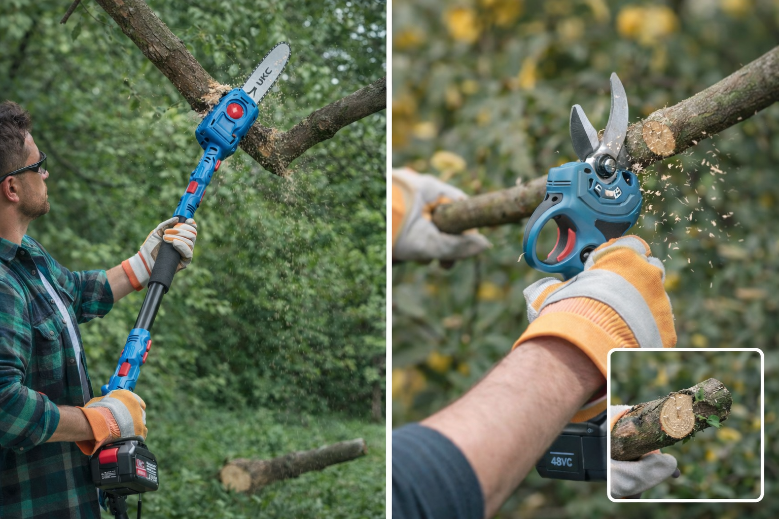 Zestaw Akumulatorowych Narzędzi Ogrodowych UKC 48V: Nożyce, Mini Piła, Teleskop